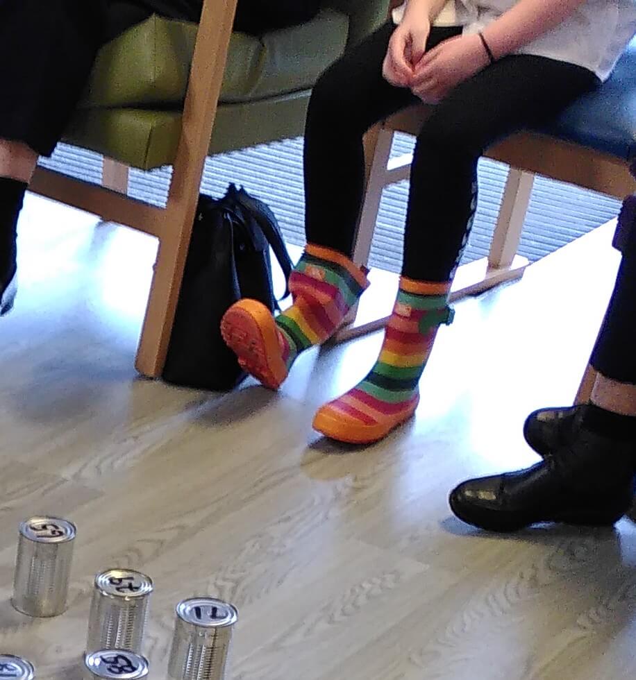 By paying close, loving attention to the small things, you can use what you learn about each person/moment as invitations to connect, guidance for next steps, and seeds for future collective endeavours. This way of being is especially important when people don’t feel ready/aren’t able to take an active/direct role in co-designing the community space. These small and vital ingredients can include accurately learning someone’s name; commenting positively on what someone’s wearing such as those famous rainbow boots. The stories they share; who/what they gravitate towards; the hobbies they enjoy/enjoyed; food they like/what allergies they have; how they move about the room. How they communicate and interact like preferring someone sitting on their left side due to being deaf in their right ear. The themes of communication that encourage each person to smile and laugh or one of our Kingswood friends enjoying friendly banter about how she likes to cheat when playing competitive games and one of the children always arriving with a new joke to share that was practiced on the walk up.