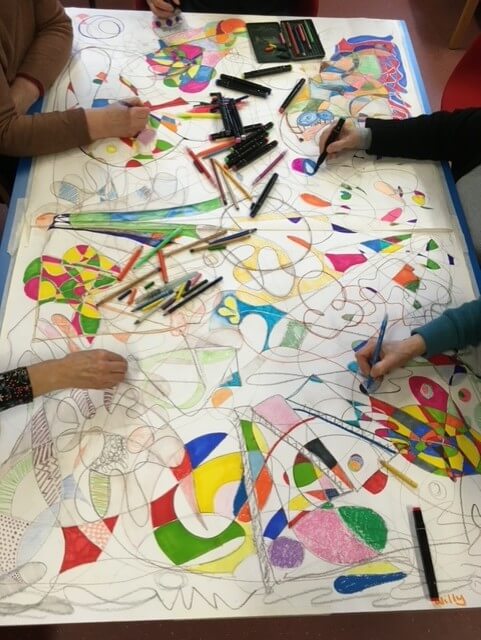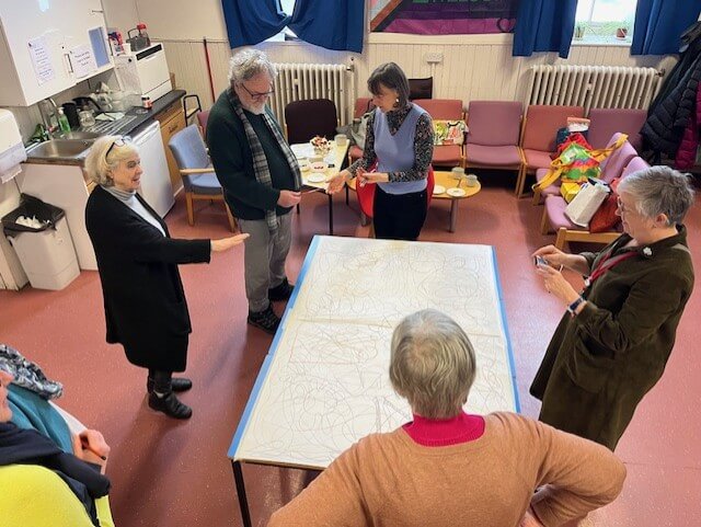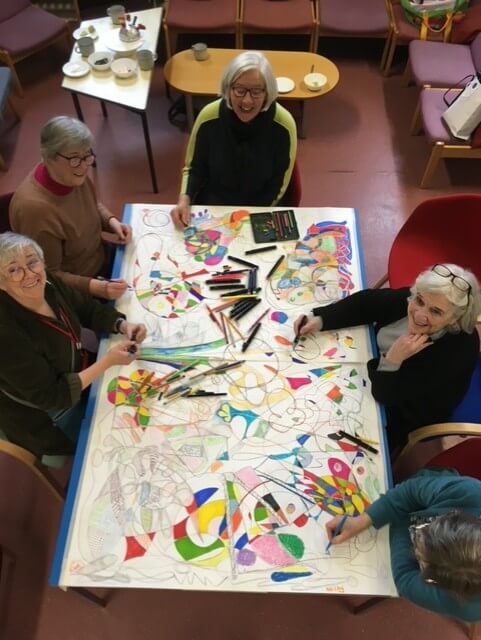 Three months in I look forward to going to work in a vibrant community and meeting like minds and creative spirits. The Meeting Centre training led by the University of Worchester was mindful and thorough. The Joy of the Meeting Centre movement is that, led by members interests, each Meeting Centre in Scotland is different. At the Heart Meeting Centre we share an interest in creative thinking and so we leapt into the Arts in Healthcare Scotland – ITAK art collaboration working alongside the talented Fenella Kerr and Willy Gilder.